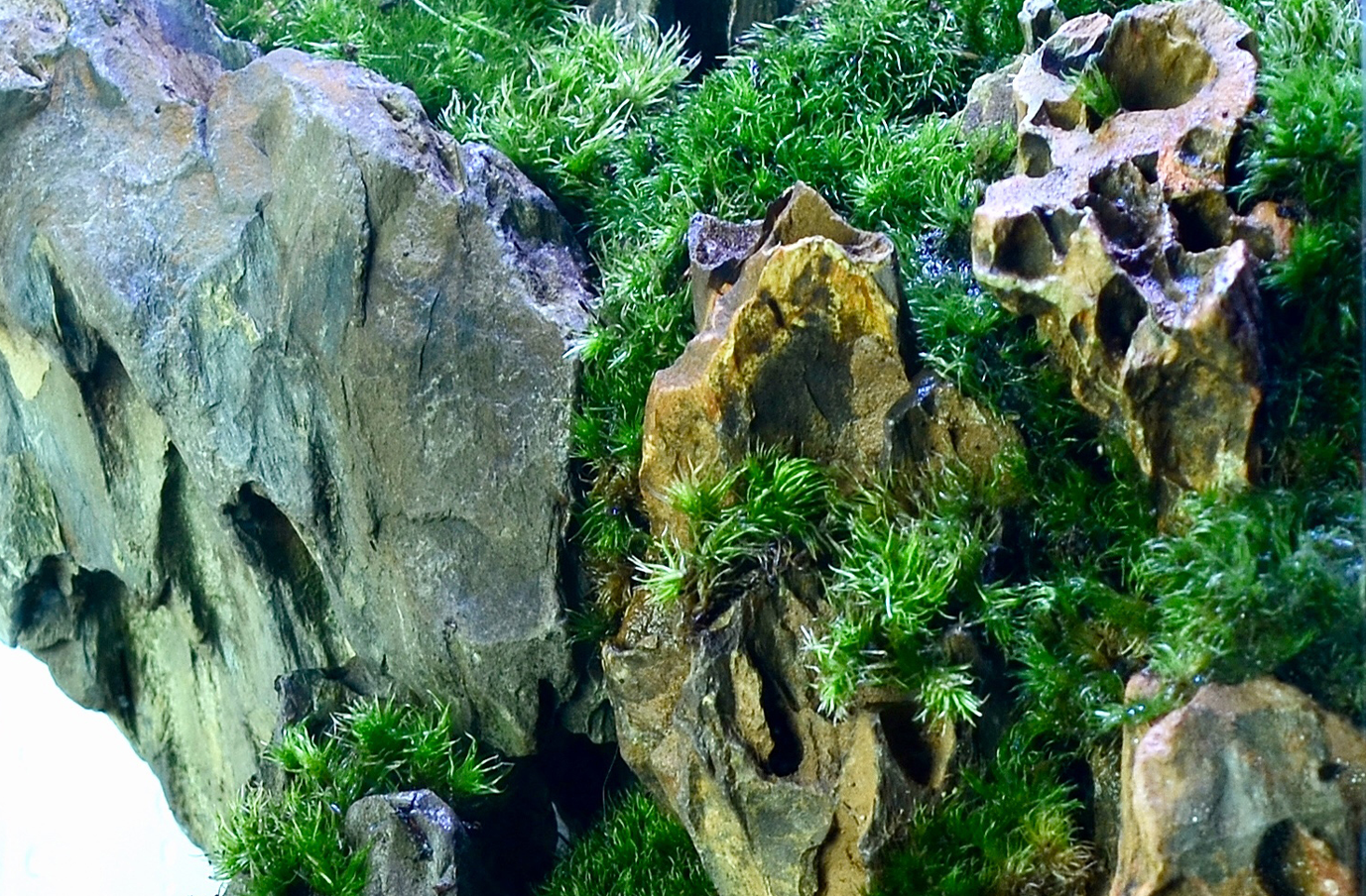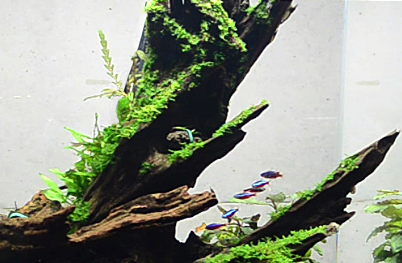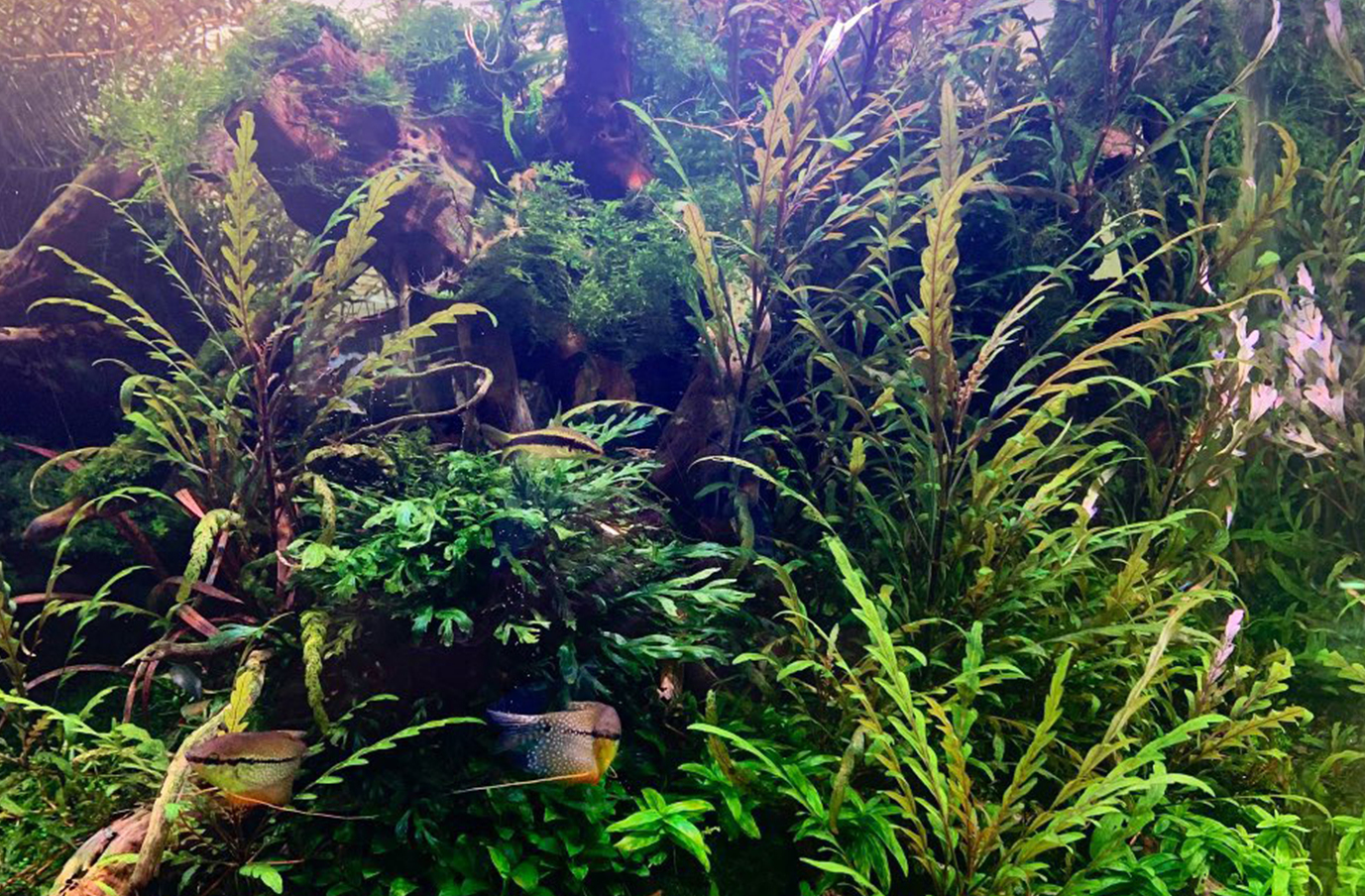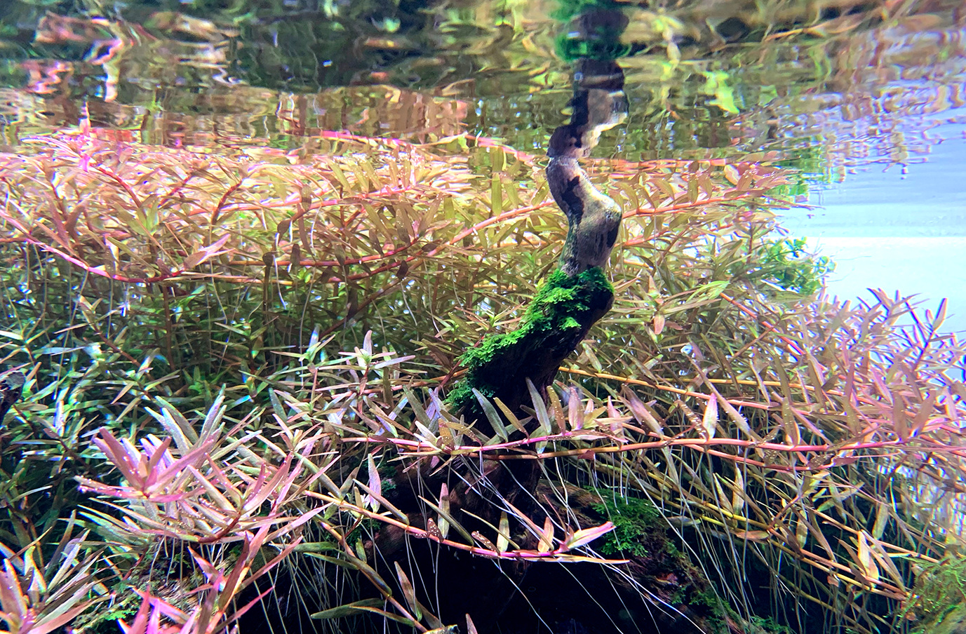 石や流木・化粧砂などでレイアウトした水槽は、自然の一部を切り取ったよう。